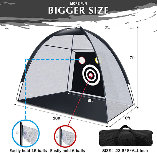 Golf Net, 10X7Ft Golf Practice Net for Backyard Driving with Target, Golf Mat, 9 Real Golf Balls, 20 Golf Tees, Carry Bag for Men Kids Indoor Outdoor Sports Game
